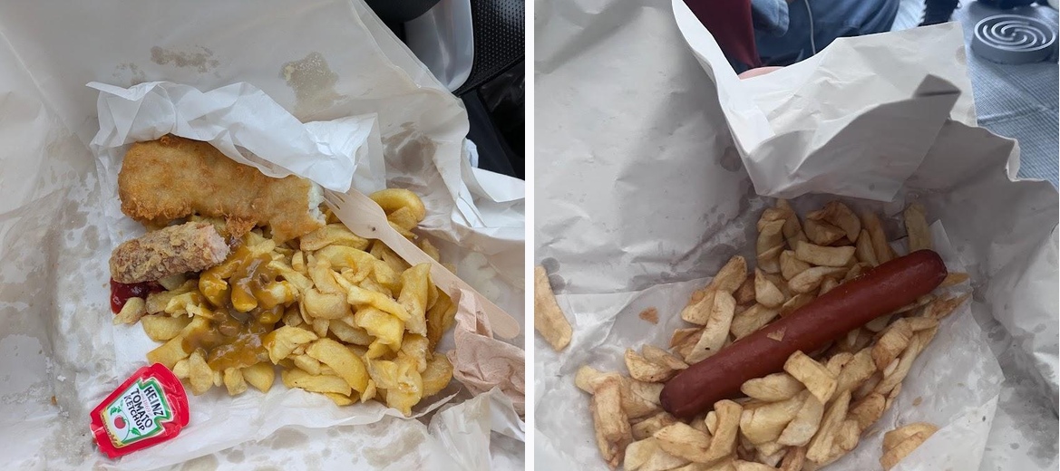 Absolutely stunning, massive portion of chips, couldn't take it on! All freshly cooked and we got the fruity curry sauce, however, we could have had mild or spicy too! Battered sausage was best I've ever had.